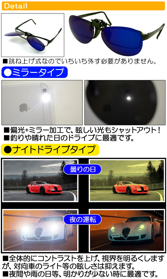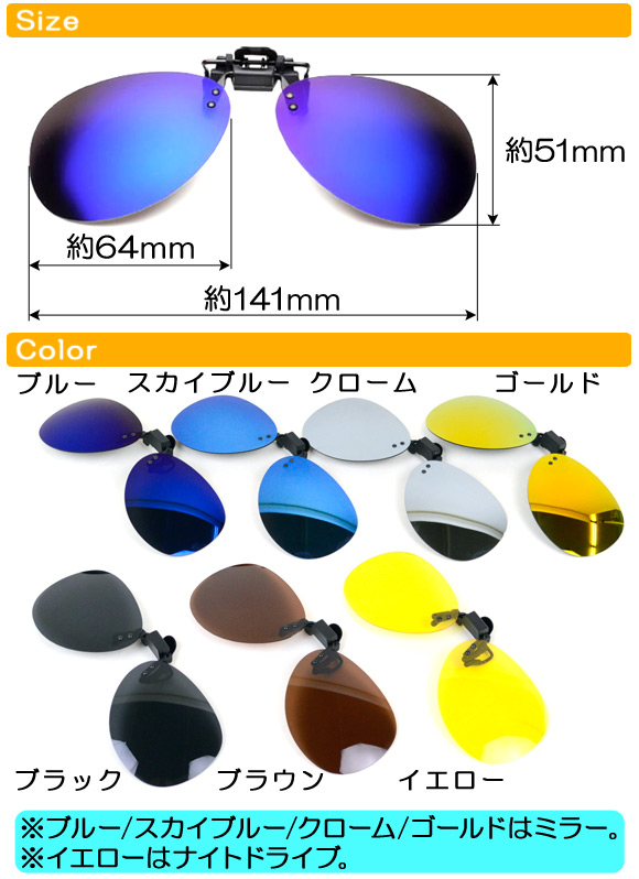AP クリップオンサングラス 跳ね上げ式 ミラー 偏光 ナイト ティアドロップ 選べる7カラー AP-AR021 收藏