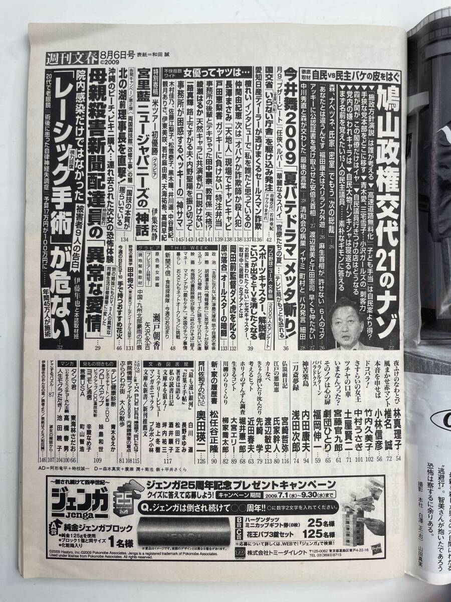 週刊文春 2009平成21.8.6瀬戸朝香/宮里藍/鳩山政権交代21のナゾ/阿川佐和子×奥【K176406】 收藏