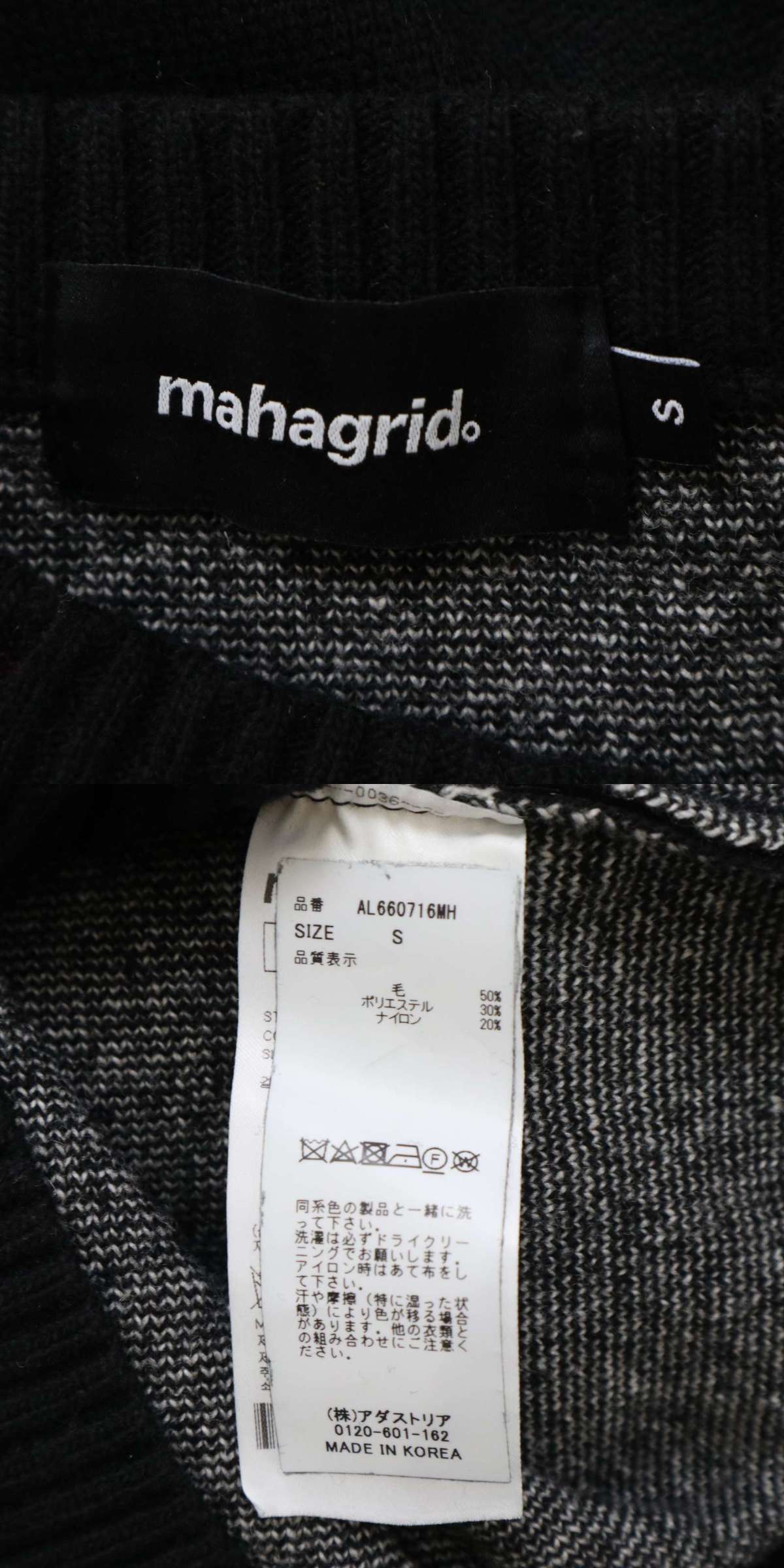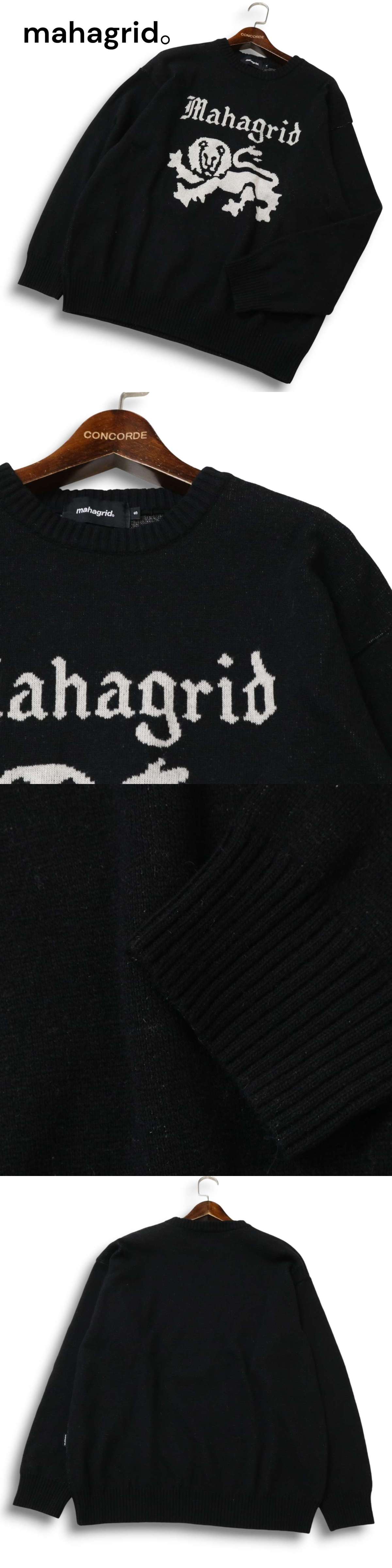 mahagrid マハグリッド 秋冬 ウール★ クルーネック グラフィック ロゴ ニット セーター Sz.S メンズ 黒 收藏