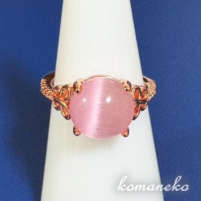 A372 指輪 レディース ローズクォーツ ピンク キャッツアイ ローズゴールド クリスタル キャッツアイ フリーサイズ サイズ調節可能 蝶々 收藏