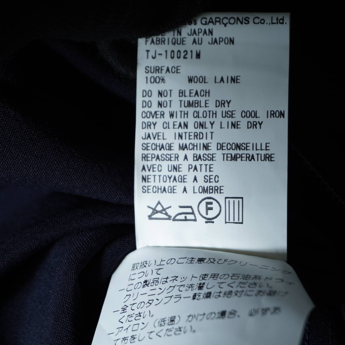 【COMME des GARONS】コムデギャルソン 極美品 タグ付 WOOL100% ジップジャケット dark navy 收藏