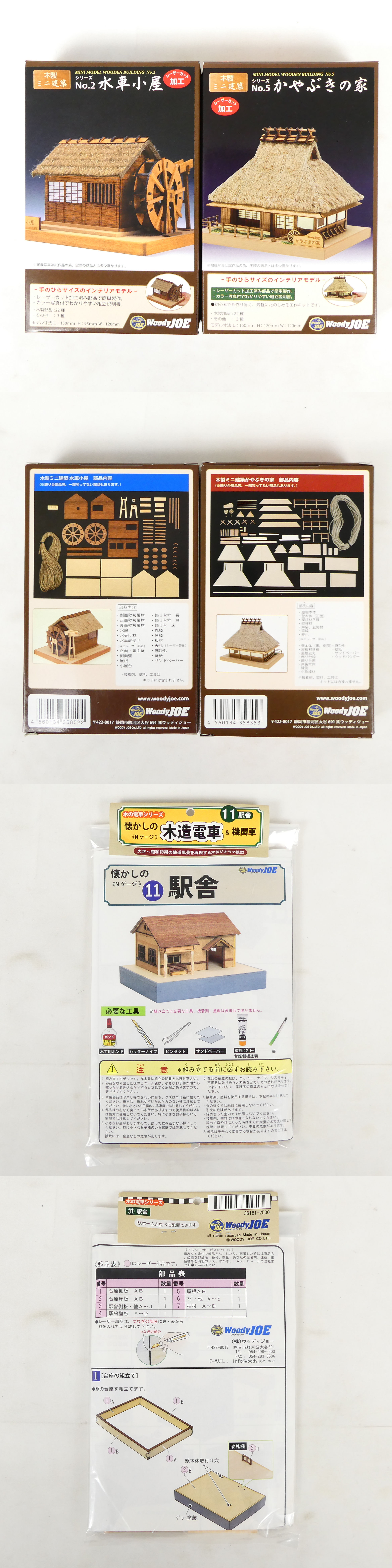 未組立 木製建築模型 4点セット ウッディジョー Woody JOE ミニ建築シリーズ 旅籠 水車小屋 他 レーザー加工 コレクション品■PF038s■ 收藏