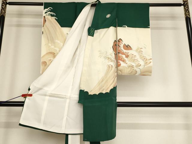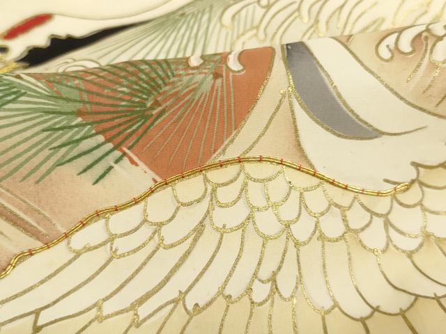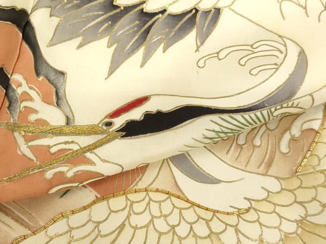 平和屋着物[]お宮参り 男の子 祝着 産着 初着 のしめ 駒刺繍 飛鶴立波文 金糸 金彩 正絹 逸品 AABB5519ja 收藏