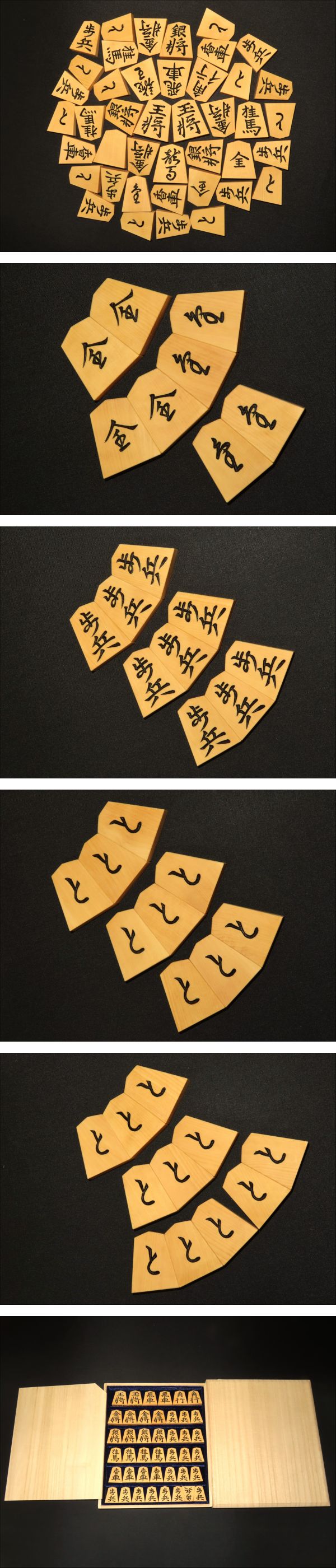 1000円スタート▲吾道作清安島黄楊上柾目彫将棋駒▲新品桐平箱付
