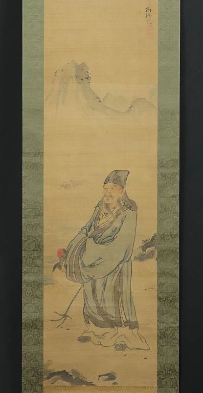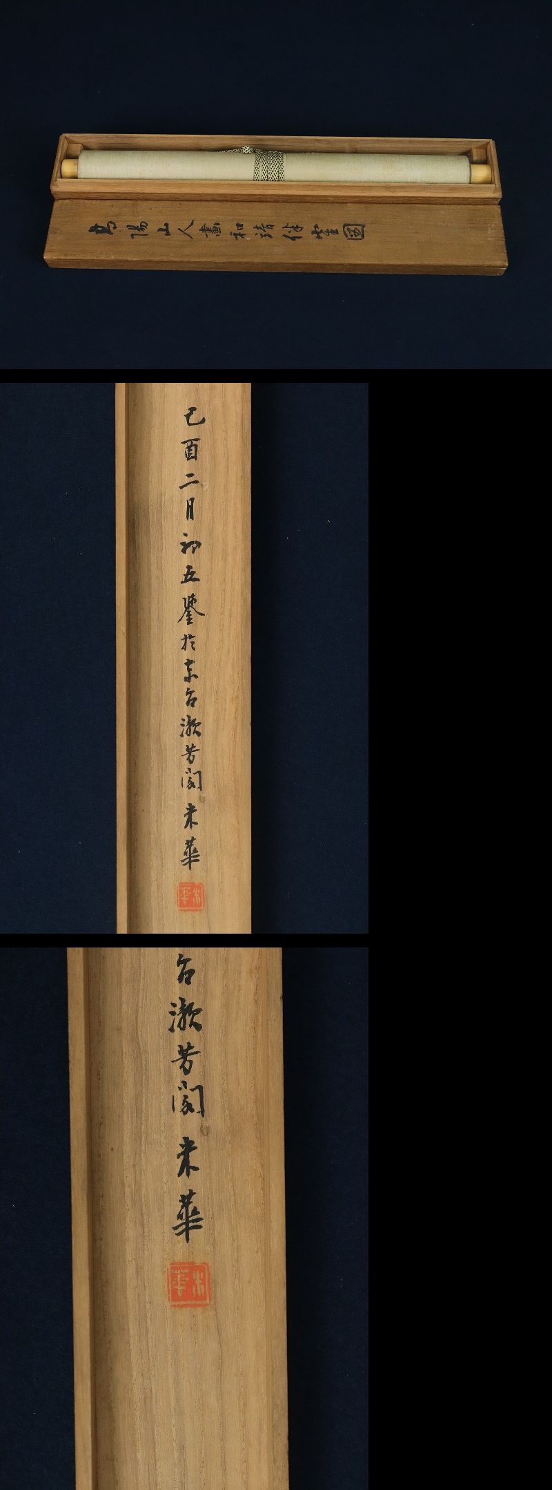 11220■【真作】中山高陽 「和靖伴霊図」 絹本 肉筆 山岡米華極箱 彭城百川に師事 南画家 掛軸 收藏
