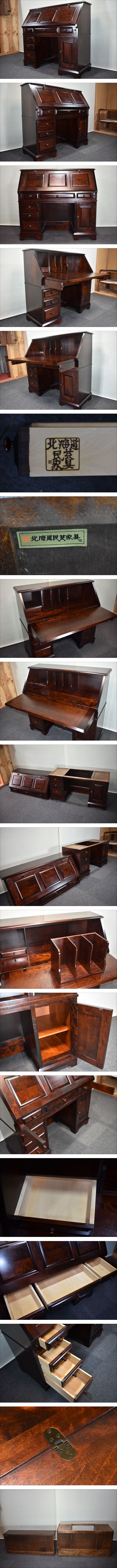 ■極美品■北海道民芸家具 ライティングビューロー 両袖 机 デスク 樺材 無垢■2分割■絶版/名品/希少■検:松本民芸家具■ | |||