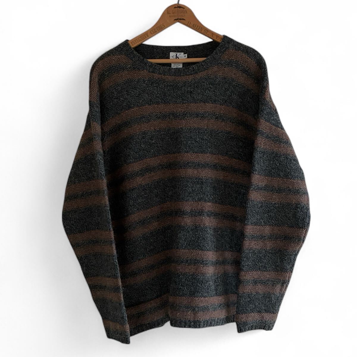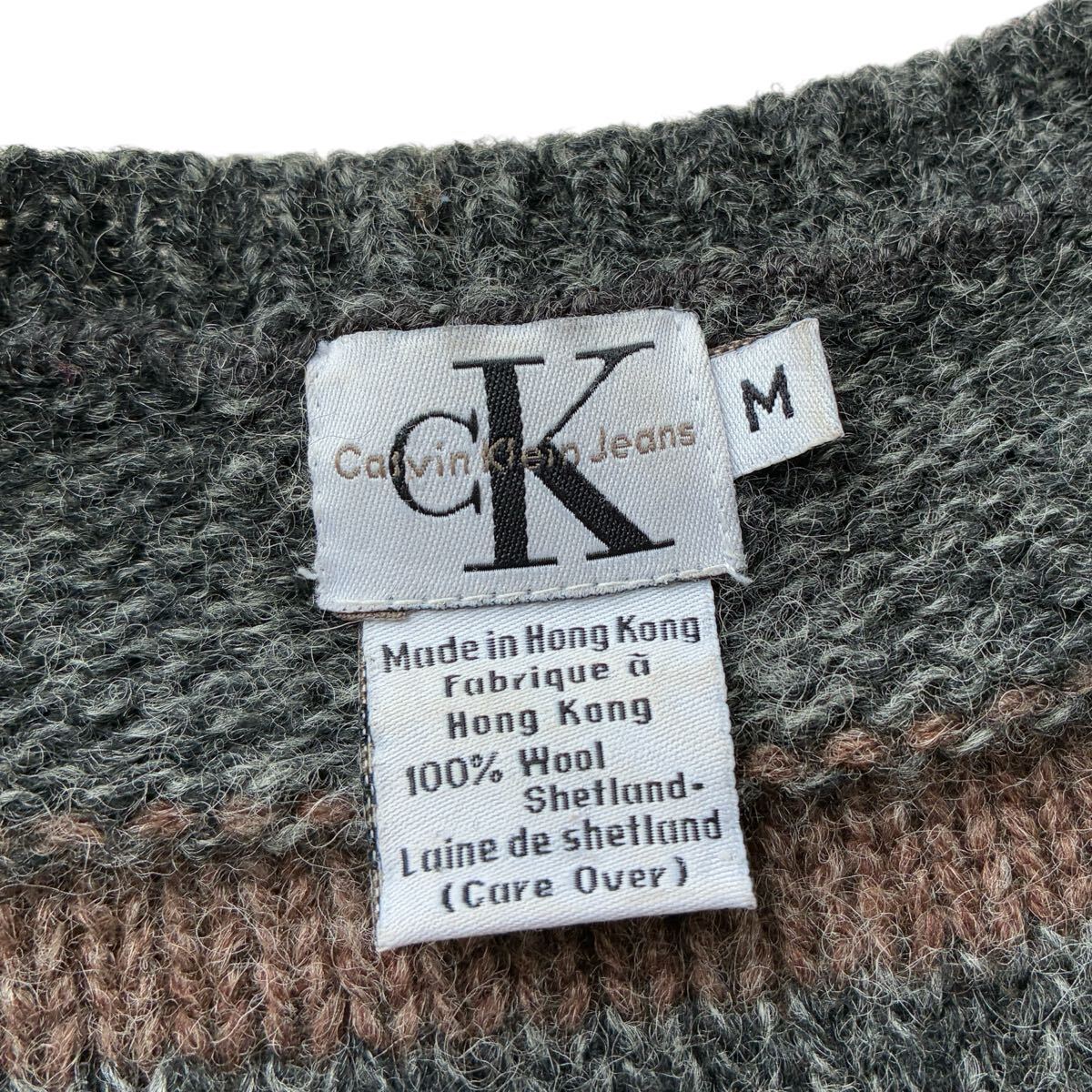 90s Calvin Klein Jeans シェットランドウール ボーダーニット チャコール×ブラウン セーター ビンテージ オールド CK カルバンクライン 收藏