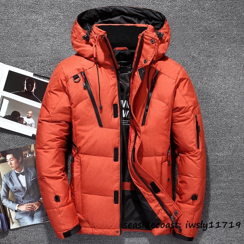 特売■冬新品 大人気 ダウンジャケット メンズ スキーウェア ダウンコート アウトドア ショートコート ジャンパー ブルゾン オレンジ M 收藏