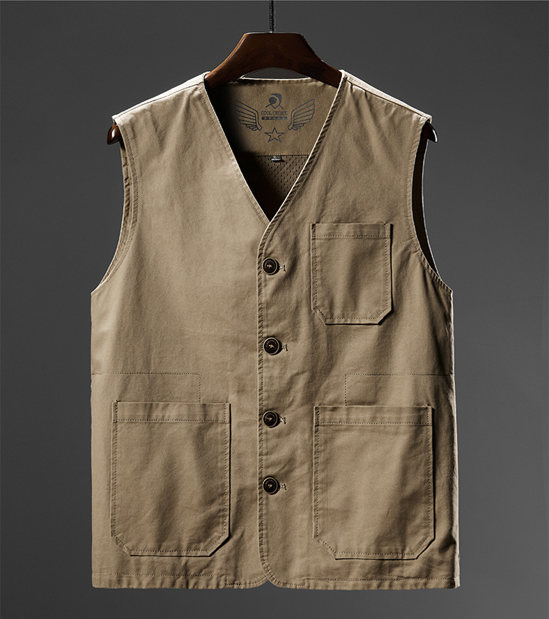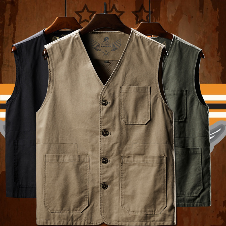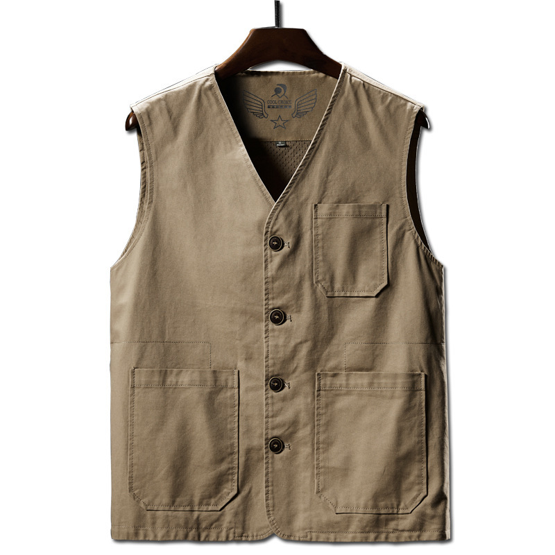 新入荷 メンズ前開きべスト ジレ メンズ ジレ フィッシング アウトドア アウトドアベスト釣り 薄手カーキLお色選択可 收藏