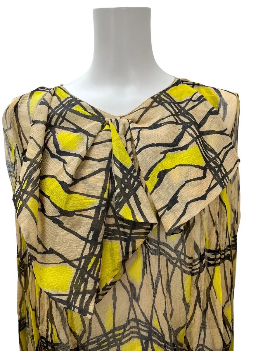 ◇ MARNI マルニ ワンピース 膝丈 長袖シルク100% シアー 総柄 ベージュ 黒 S5T005 收藏
