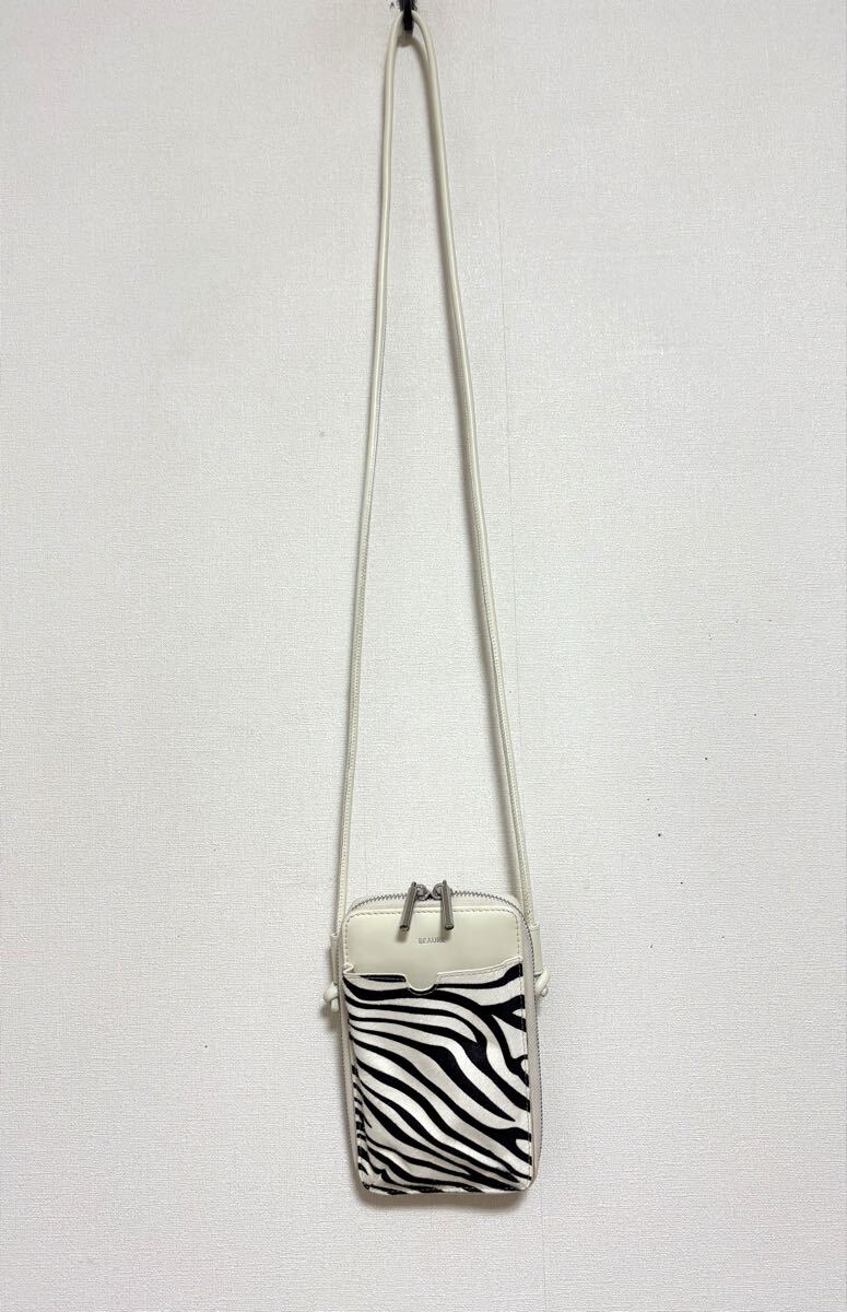 「ビュレ」のスマホショルダーバッグです。サイズ・・・縦約18cm、横約11cm、マチ約2cm。素材・・・レザー、ハラコ。カラー・・・オフホワイト。ハラコとスムースレザーのコンビで高級感があります。スマホ、お財布、キーチェーン、小物収納がそろった多機能ショルダーバッグです。ショルダー紐は長さ調節もできます。着こなしのアクセントになってかわいいです。数回の使用で、状態は悪くないと思います。ただ、あくまでユーズドですので、神経質な方はご遠慮ください。よろしくお願いいたします。
