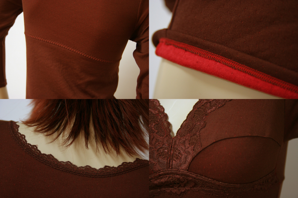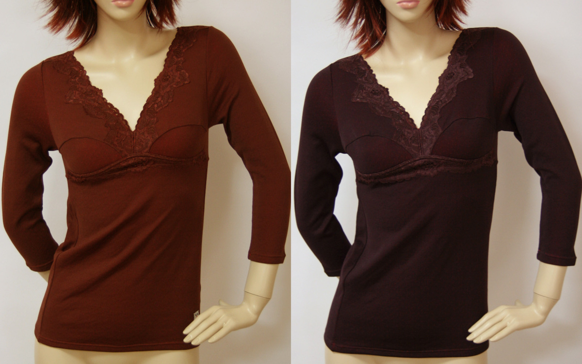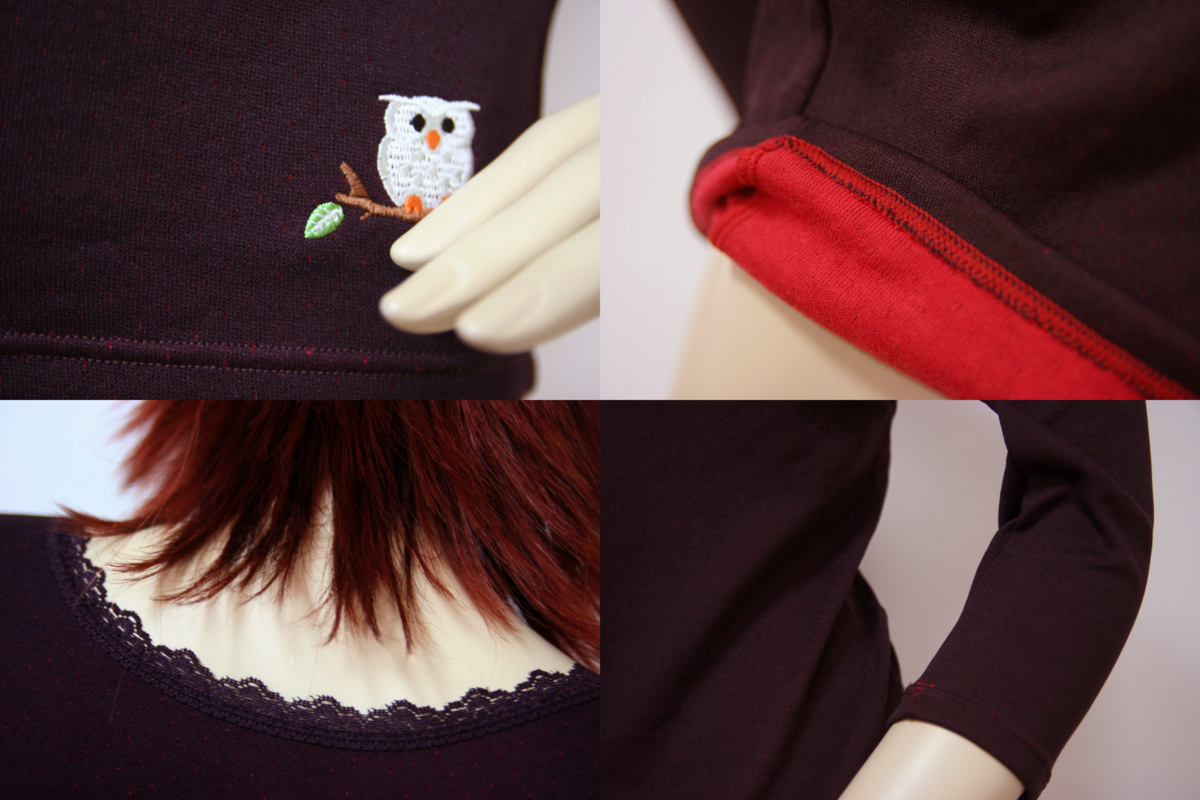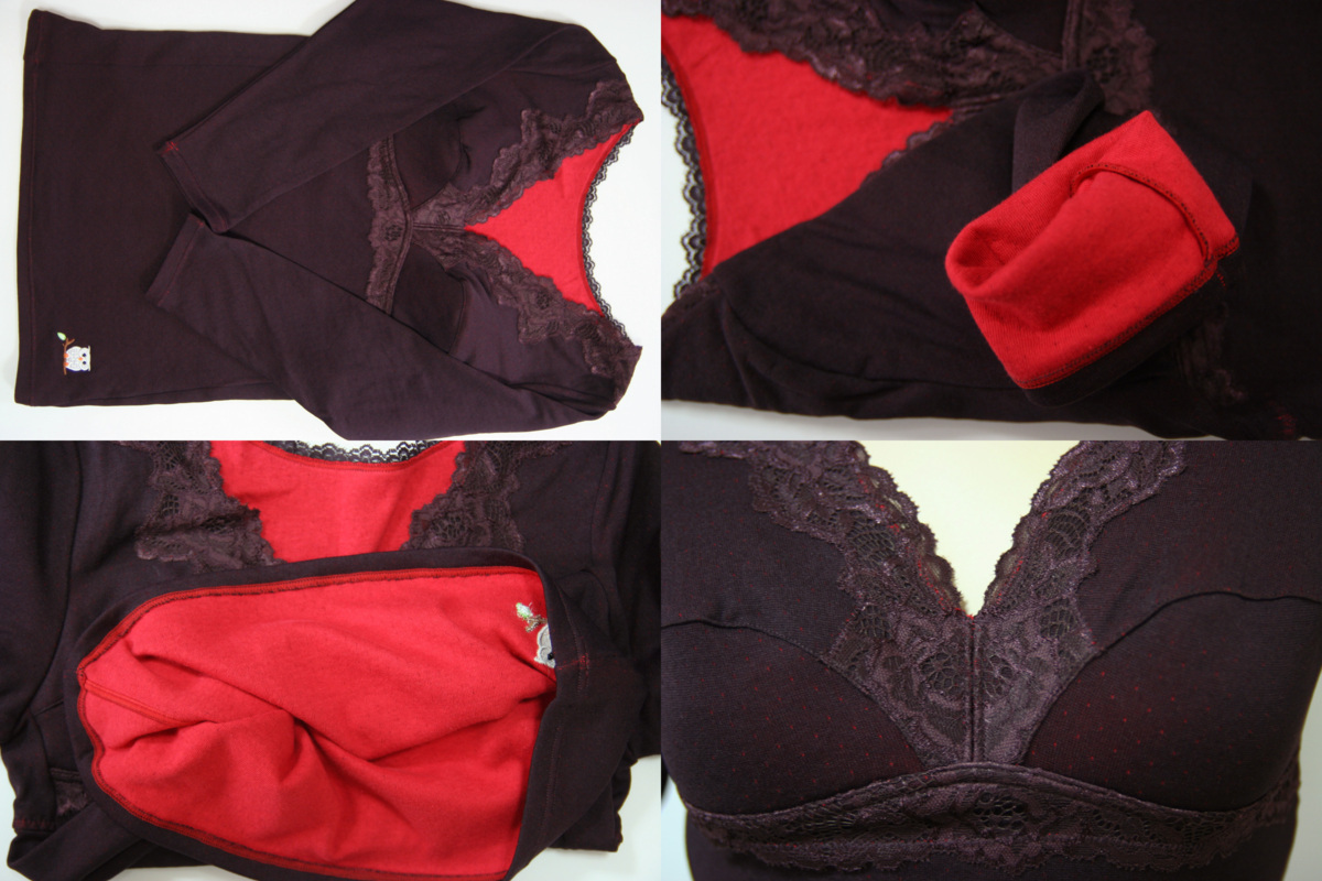 送料無料◆超お得◆2色組◆裏地:綿100%◆袋編み◆赤色縁起&健康肌着◆ふくろう刺繍◆ブラカップ付き長袖インナー(M/ブラウン&パープル) 收藏