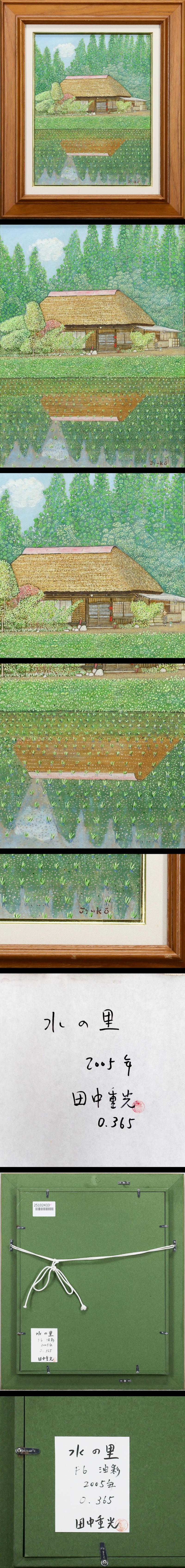 【真作】【WISH】田中重光「水の里」油彩 6号 2005年作 共シール ◆水田に映る古民家 〇素朴画家 越後湯沢全国童画展特別賞 #25102433 收藏