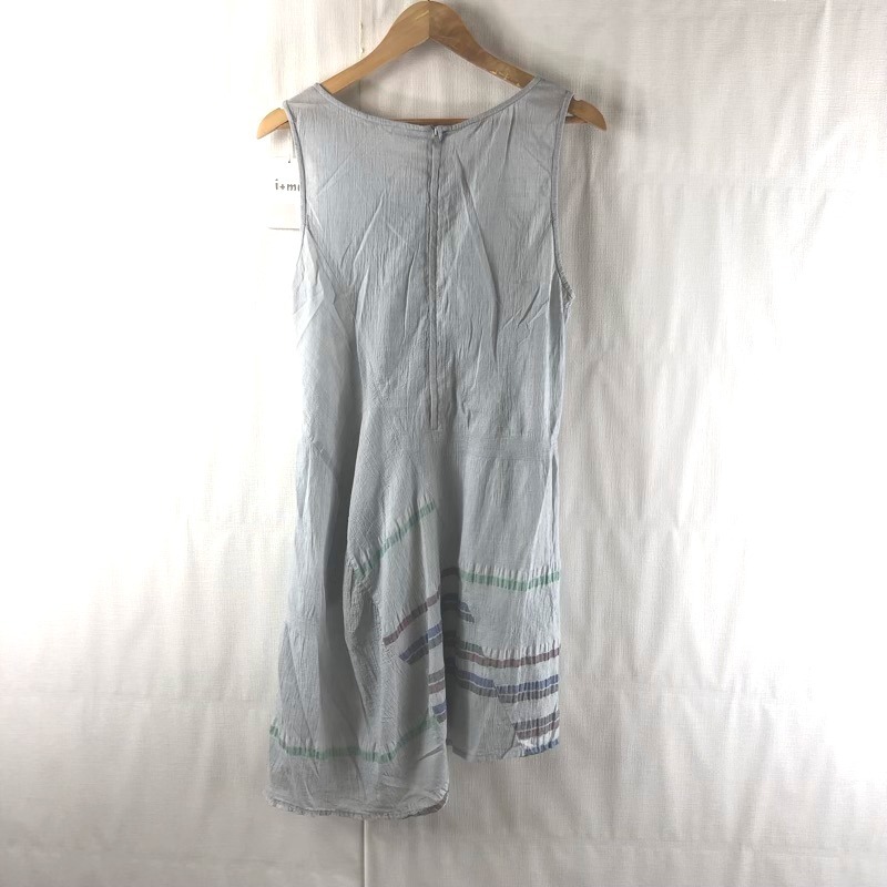 センソユニコ i+mu ワンピース ノースリーブ 変形 ボーダー 綿 ペチコート付き タグ付き ライトグレー系 40サイズ 825047 收藏