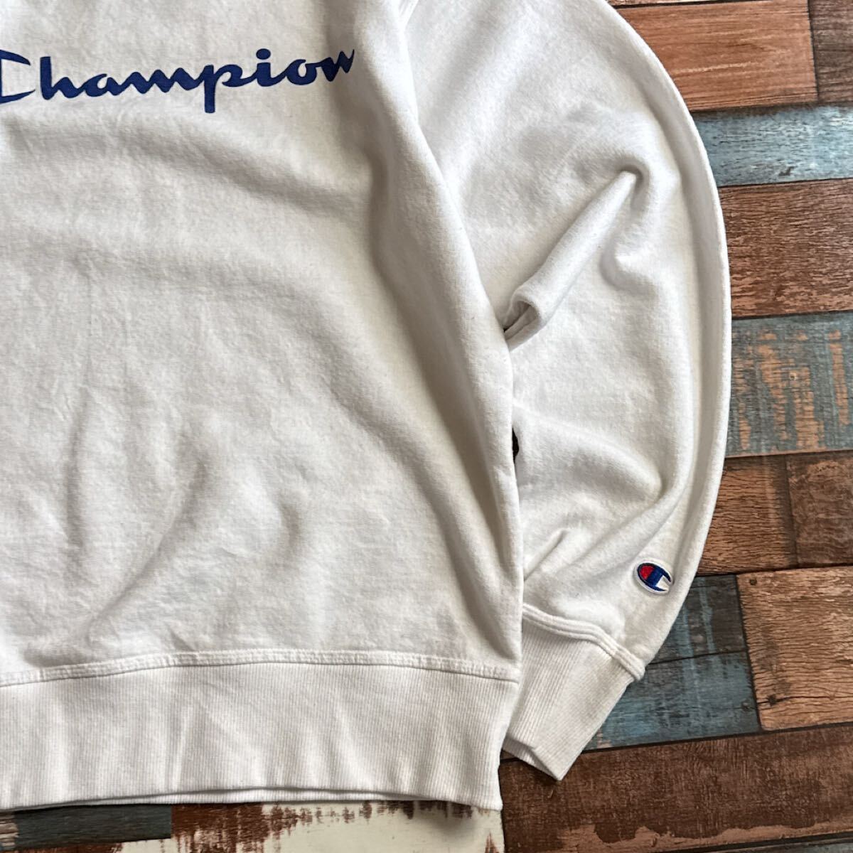 チャンピオン ロゴ刺繍 ホワイト スウェット USA規格 M ホンジュラス製 トレーナー Champion コットン 收藏