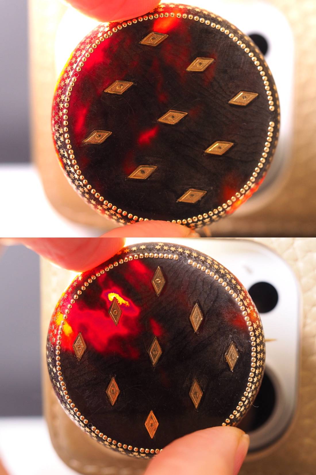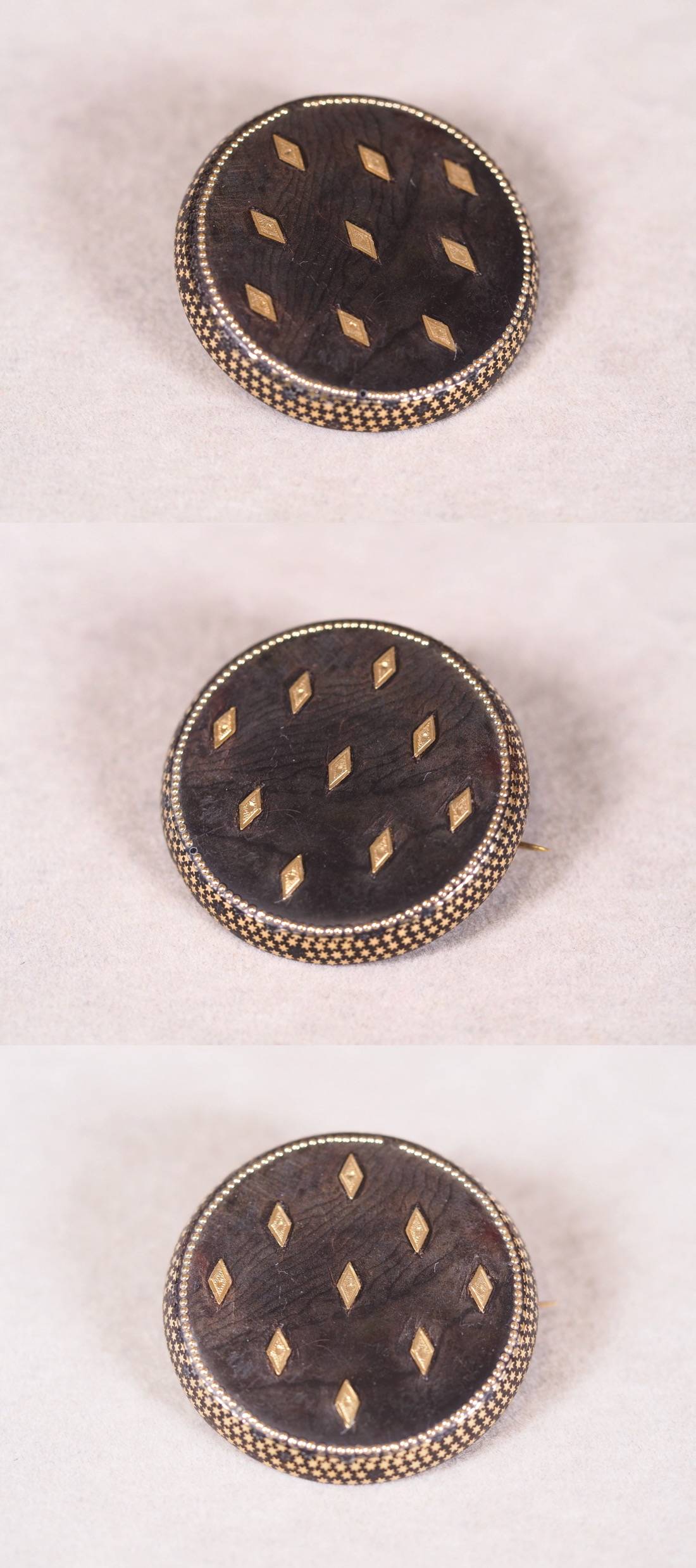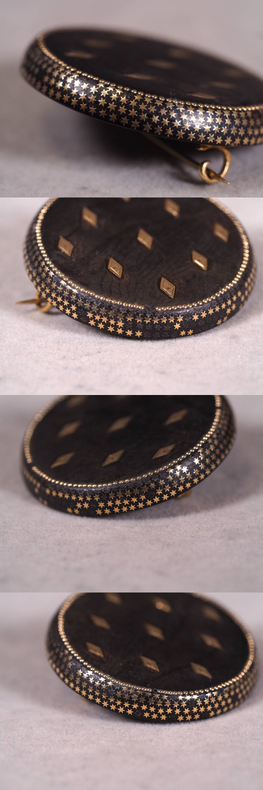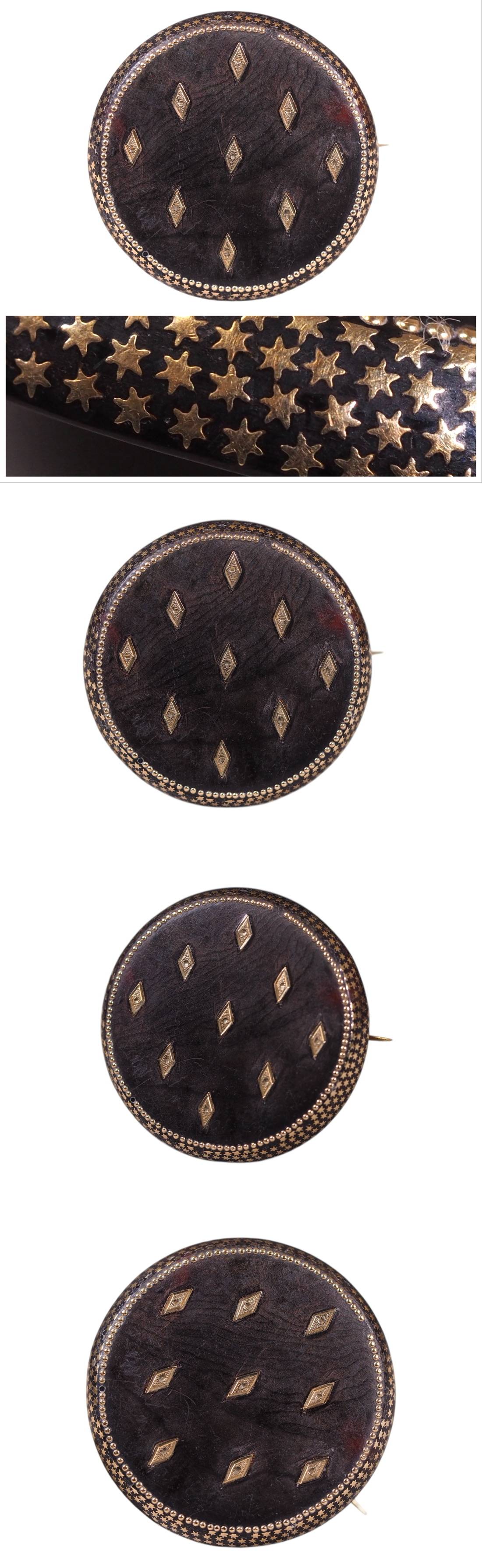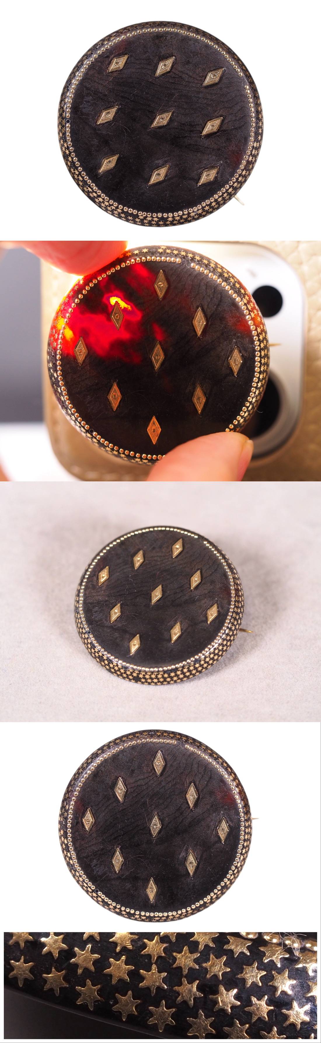 英国ヴィクトリア時代・本鼈ピクウェブローチ!可愛い星と花繊細金象嵌珠玉のデザイン!19世紀後半頃・本物保証!上質本鼈甲の本筋美 收藏