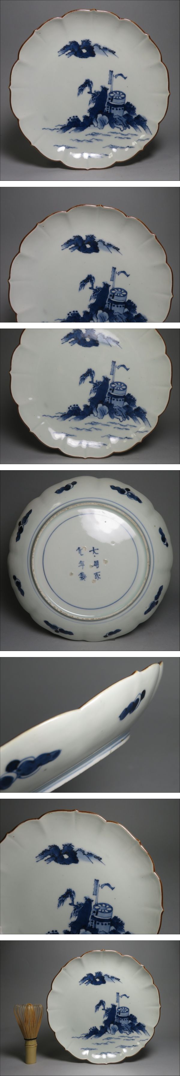 「コレクター所蔵品」◆江戸期◆古伊万里 染付 山水風景文輪花皿 高台内に「太明成化年製」 ◆検:伊万里焼/有田焼/鍋島焼lot:110910 收藏