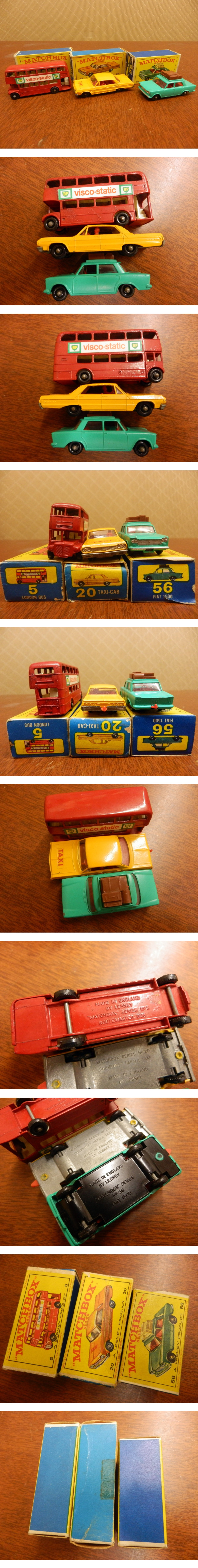 ミニカー 41 / MATCHBOX No.5 London Bus, No.20 Chevrolet Impala Taxi, No.56 Fiat 1500 まとめて3点set ヴィンテージ レア 貴重 当時物 收藏