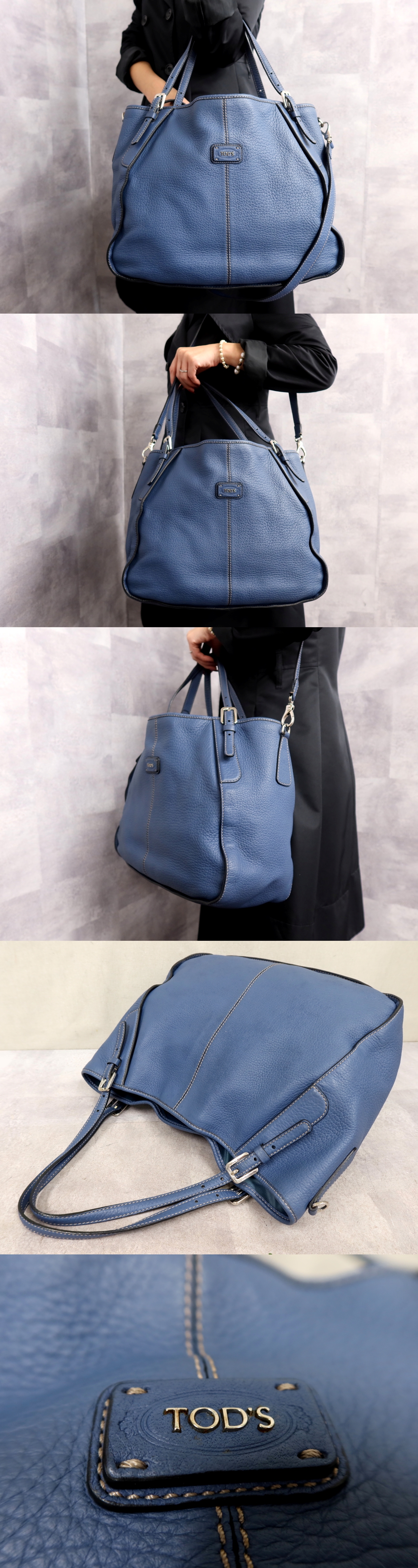 ●超美品●TODS トッズ●ロゴ金具●カーフ レザー 本革●2way トート バッグ●ブルー●シルバー金具●腕掛け●A4 収納 かばん●Js63085 收藏