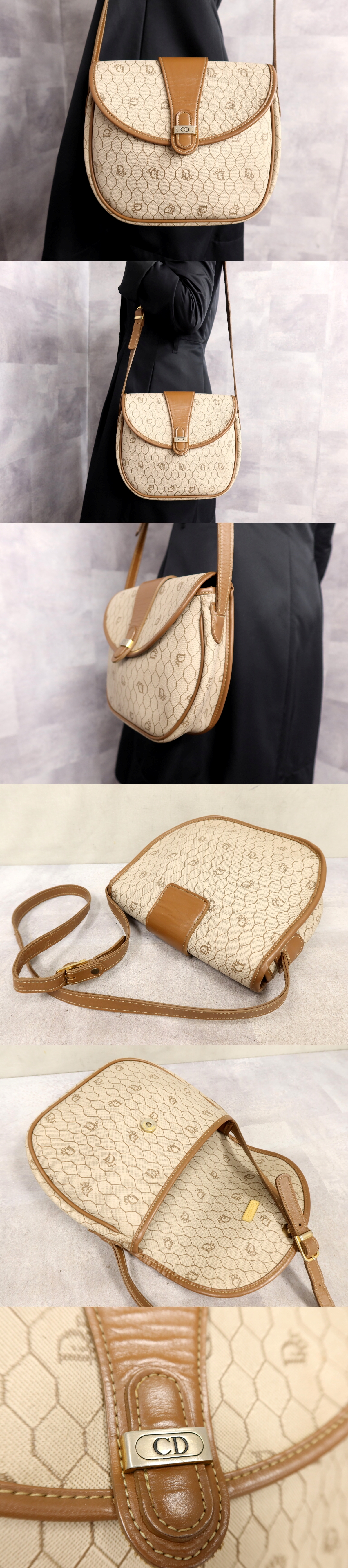 超美品●クリスチャン・ディオール●ハニカム柄●PVC カーフ レザー 本革●ショルダー バッグ●ブラウン系●G金具●ヴィンテージ●Js63023 收藏