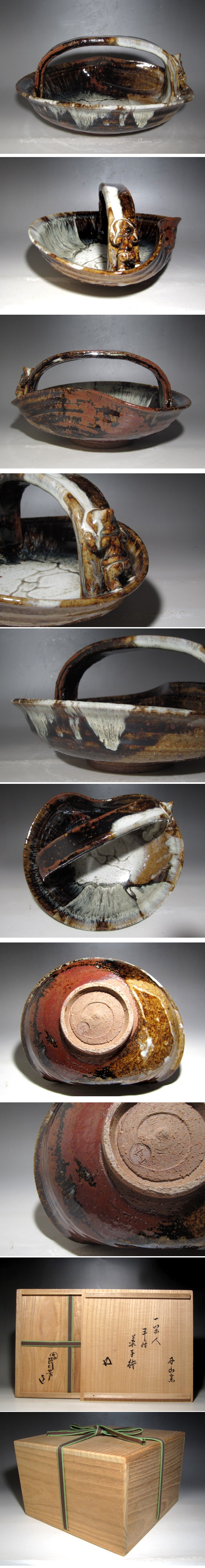 ○商品説明○ 丹山窯造の一閑人手付菓子鉢です。 趣のある美しい名品です。 箱蓋裏に裏千家十五世鵬雲斎の花押があります。 ○サ イ ズ○ 直径25cm/高さ12.5cm(多少の誤差はお許しください) ○状 態○ 無疵である事は確認しておりますが、時代のスレ等ある場合があります。 写真で良くご覧頂き気になる個所が御座いましたらご質問下さい。 ○決済方法○ かんたん決済 ○発送方法○ 佐川急便元払い 全国一律1,000円 北海道1,500円 沖縄2,000円 離島2,500円 複数点ご落札頂きましても、一点分の送料で結構です。 | ||