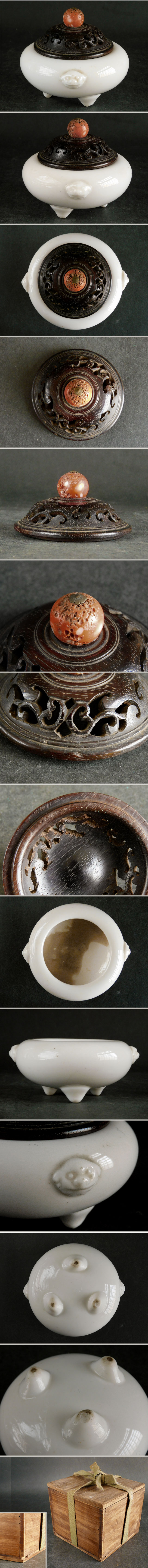 唐物 白磁 獅子耳 珊瑚摘み 香炉 中国 清 收藏