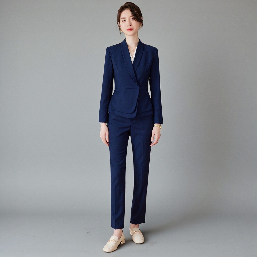 ☆ ネイビー ☆ M ☆ ビジネススーツ かっこいい セット セレモニースーツ レディース スーツ パンツスーツ セットアップ 上下セット 收藏