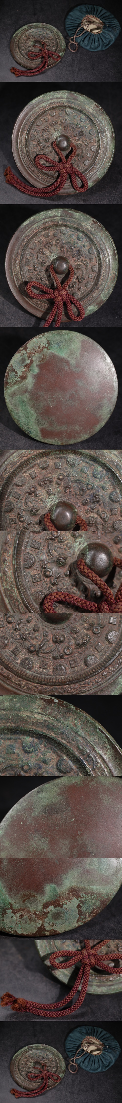 | 時代 銅鏡 古鏡 仕覆付 / 中国美術 鏡 銅 彫金 金工 煎茶飾 .G3682 |