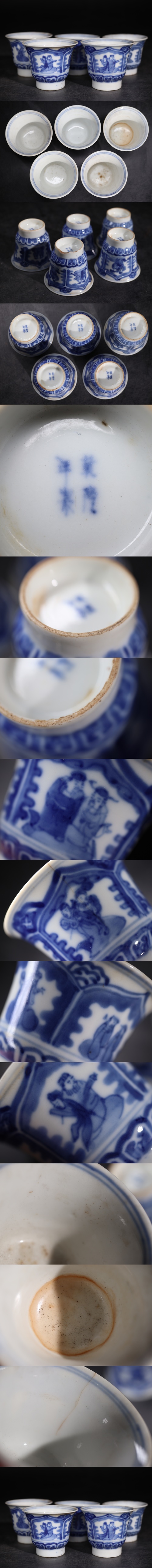| 乾隆年製 底款 人物像 煎茶碗 五客 / 清 乾隆 祥瑞 中国美術 茶器 煎茶道具 .G3681 |