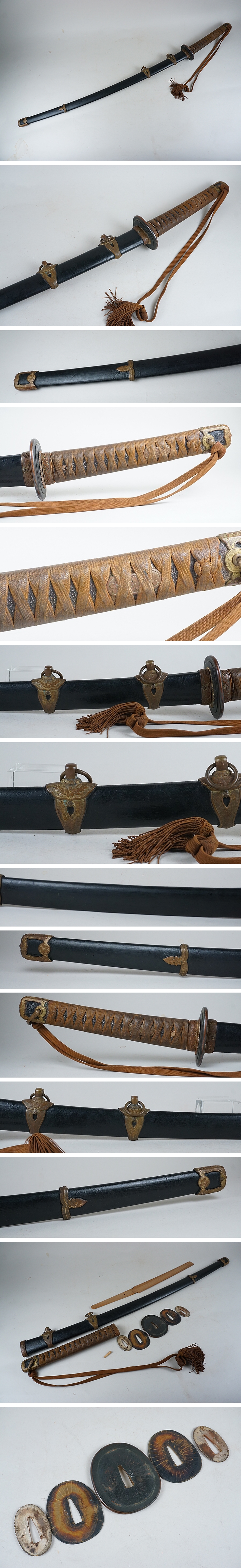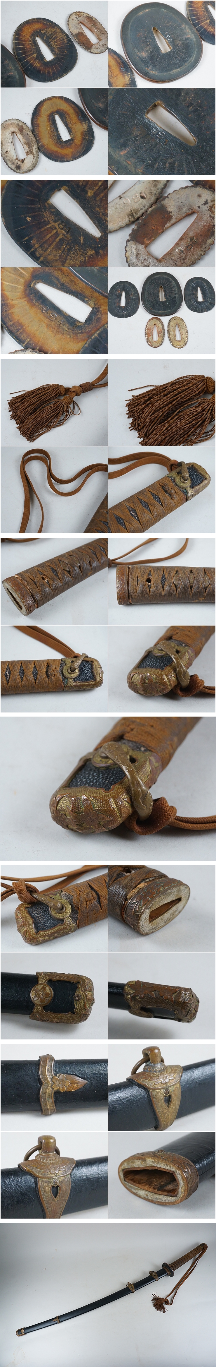 | 旧日本軍 海軍刀拵えです。 切羽、鐔に981の刻印があります。 大きな傷みなく良好です。画像ご参考の上ご入札ください。 鞘長さ75.3cm 縁幅4.5×2.5cm(茎穴3.4×1.0cm) 鐔重さ175g 幅7.8×6.7×0.5cm 柄 長さ25.0cm 縁幅4.1×2.4cm | |||