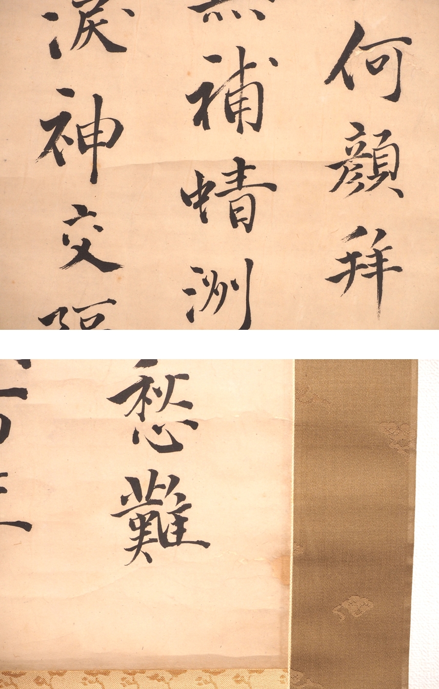 【模写】【渡鹿庵】[吉田松陰] 21589 掛軸 三行書 合箱 二重箱 細川十洲識 紙本 山口 長州 幕末の志士 師佐久間象山 在銘 收藏