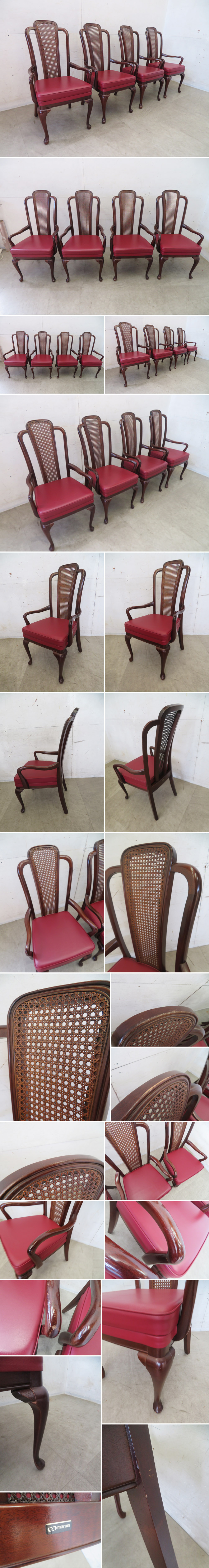 ■P365■美品■maruni マルニ木工■ブリティッシュコレクション■ジュリア■アームチェア■4脚セット■籐張り■猫脚■クラシック■ 收藏