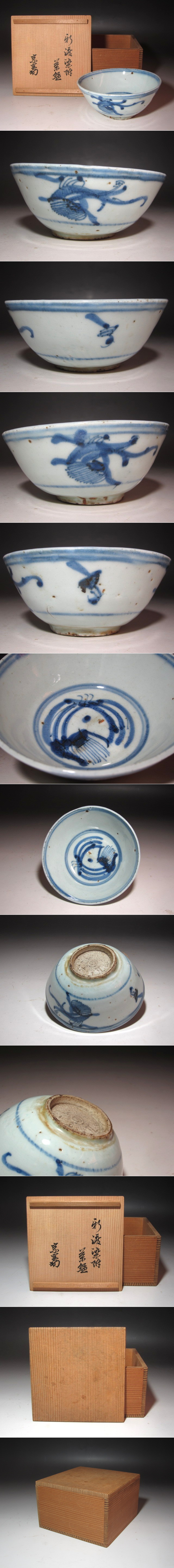 ☆ 時代 清度染付茶碗 裏千家 十四代 淡々斎の花押がございます☆y638