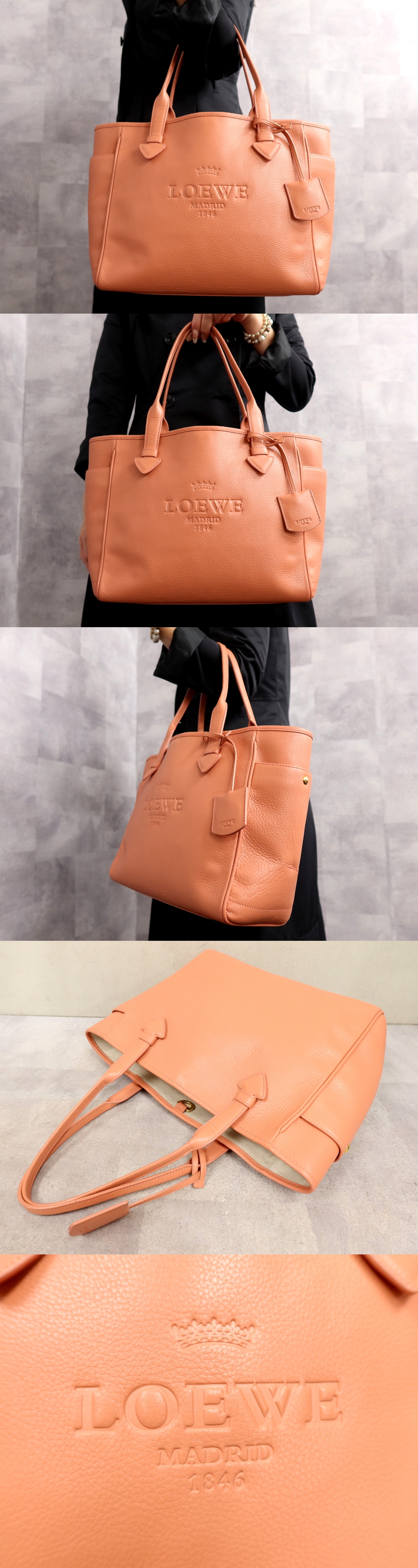 ●超美品●LOEWE ロエベ●ヘリテージ●カーフ レザー 本革●トート バッグ●サーモンピンク●ゴールド金具●腕掛け●A4 書類 収納●Js65473 收藏