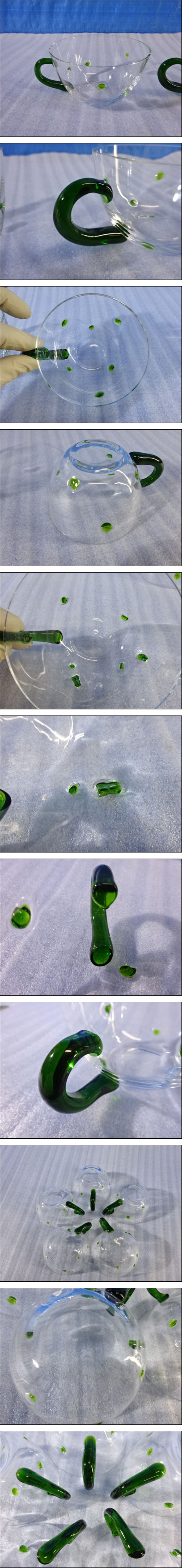 X-40/francjourフランジュール 手作り ハンドメイド ティーカップx5点 布コースターx4点 工芸ガラス 茶器 茶道具 キッチン台所用品 收藏