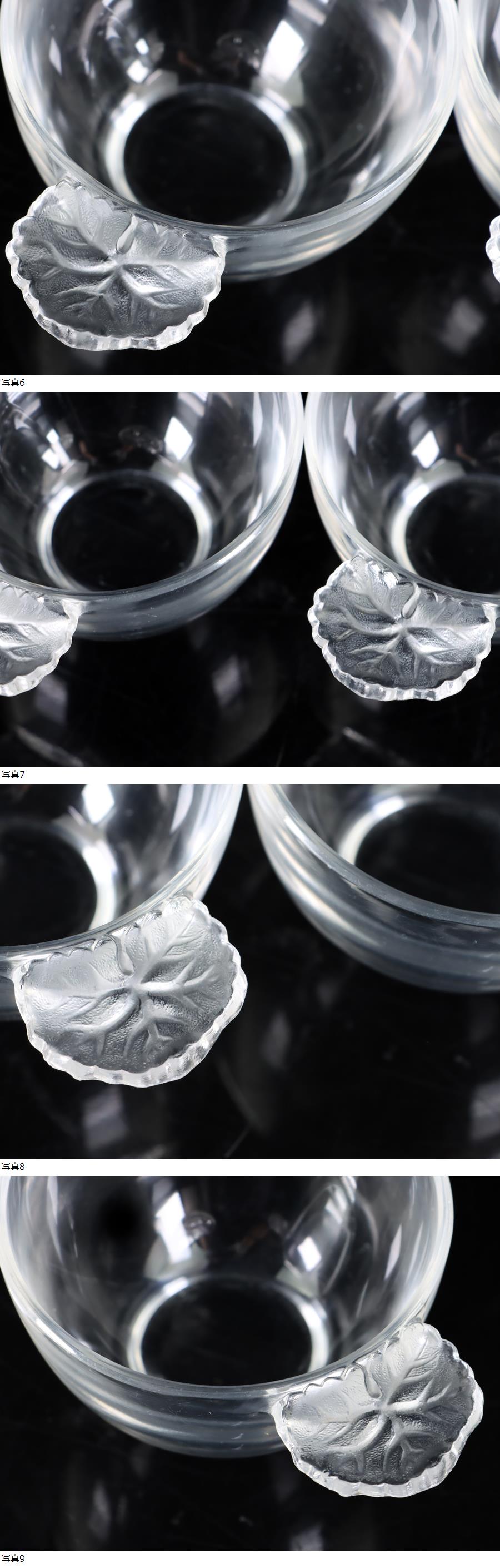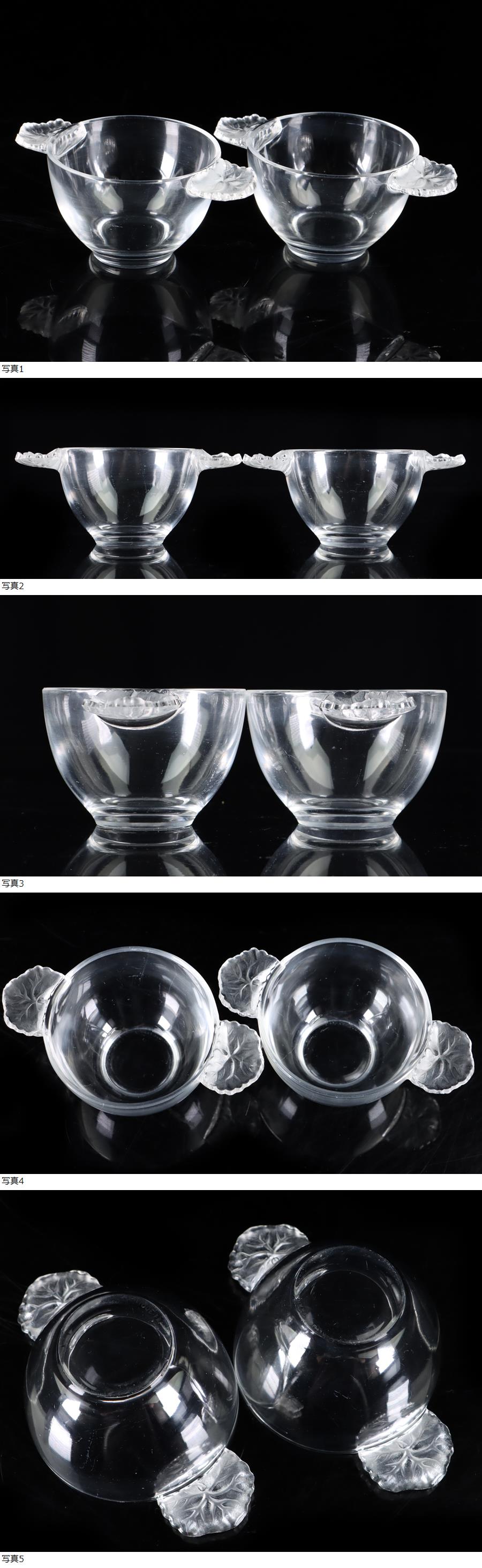 魁◆名家コレクション 本物保証 ラリック LALIQUE オンフルール 持ち手付カップ 2客セット ボウル クリスタルガラス 高さ6㎝ ma V 收藏