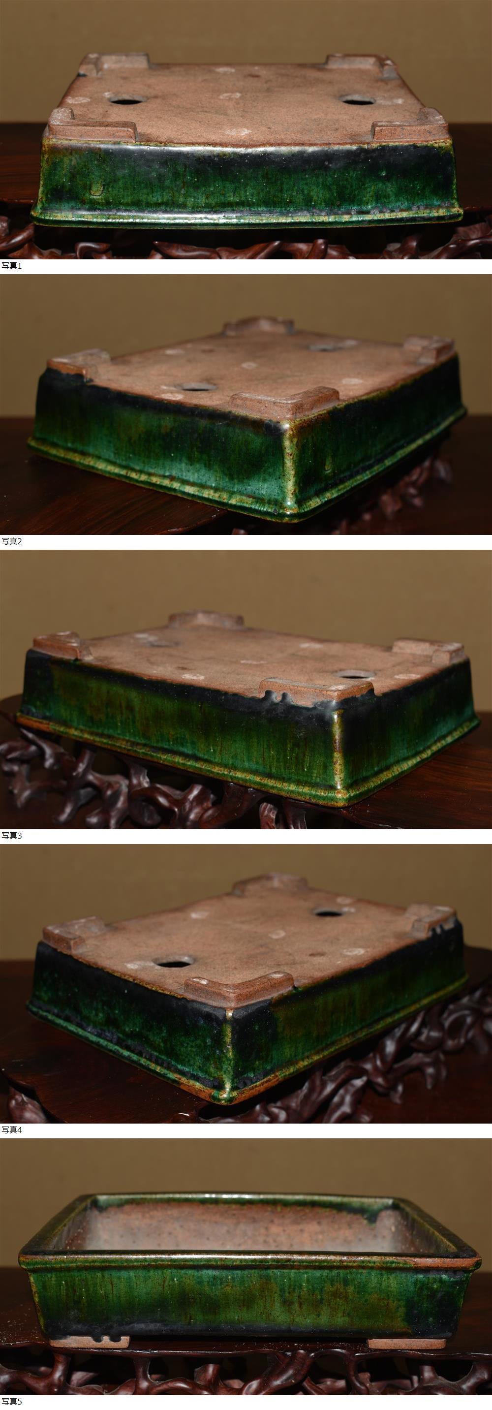 幻の名鉢作家<大玲山(緑釉窯変、広東釉)抜群のフォルム・発色最高・実用性抜群・30年前の作>外縁長方鉢・間口20,8cm 收藏