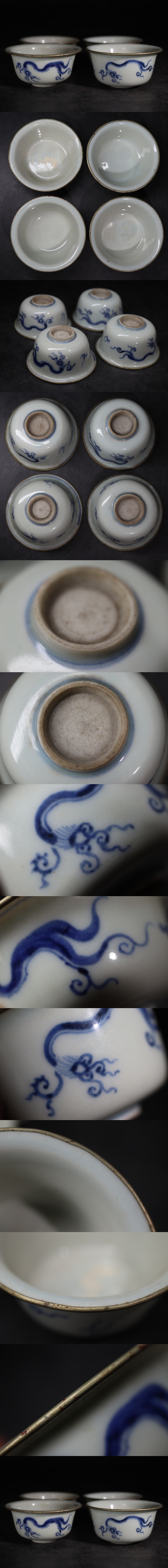 時代 染付 龍紋 銀縁 煎茶碗 四客 / 中国美術 清 新渡 茶器 煎茶道具 煎茶飾 .G3867 收藏
