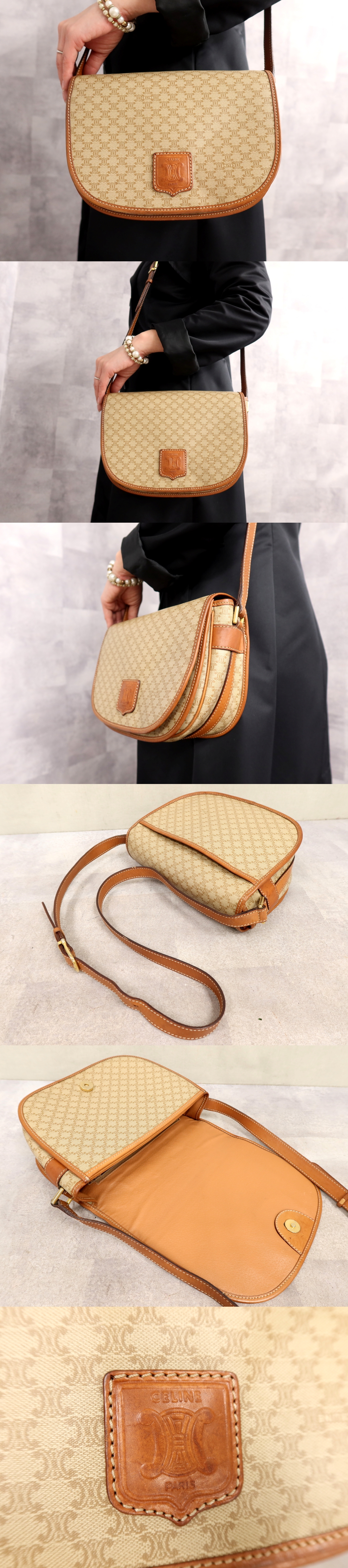 ●超美品●CELINE オールド セリーヌ●マカダム●PVC カーフ レザー 本革●ショルダー バッグ●ブラウン系●G金具●ヴィンテージ●Js66250 收藏