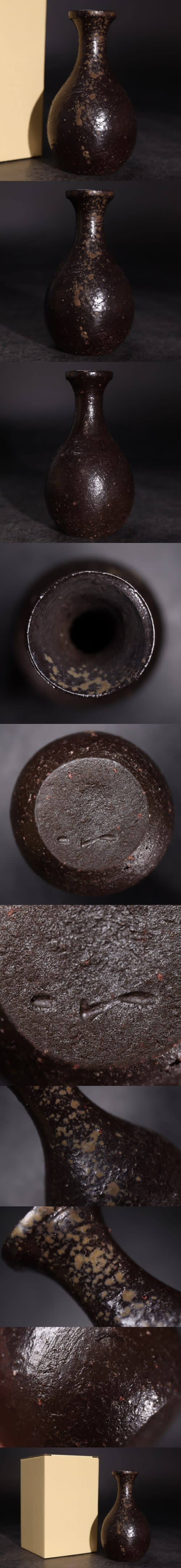 | 竹中健次 造 黒備前 徳利 箱付 / 備前焼 窯変 酒器 茶器 煎茶道具 手捻り 手造 .G4165 |