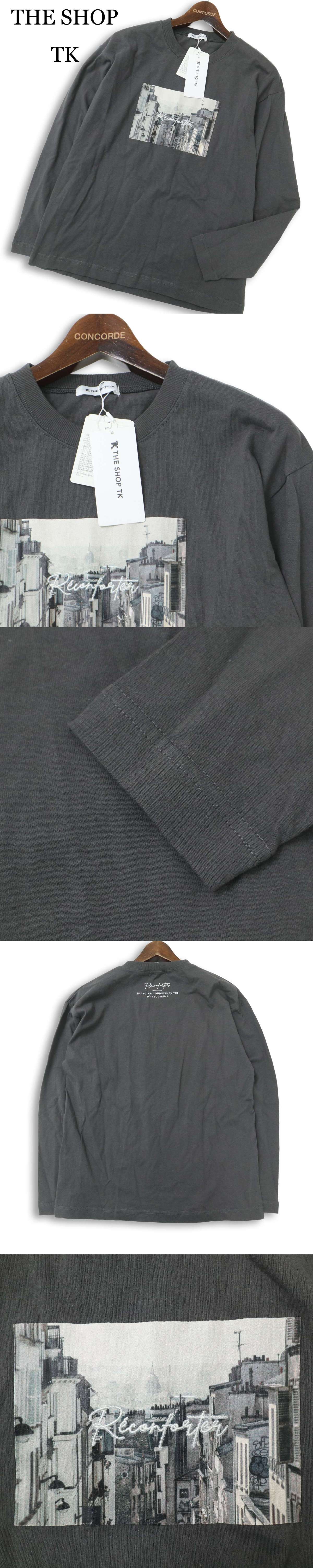 【新品 未使用】 THE SHOP TK タケオキクチ 通年★ 長袖 フォトプリント ロンTシャツ Sz.S メンズ 灰 グレー 收藏
