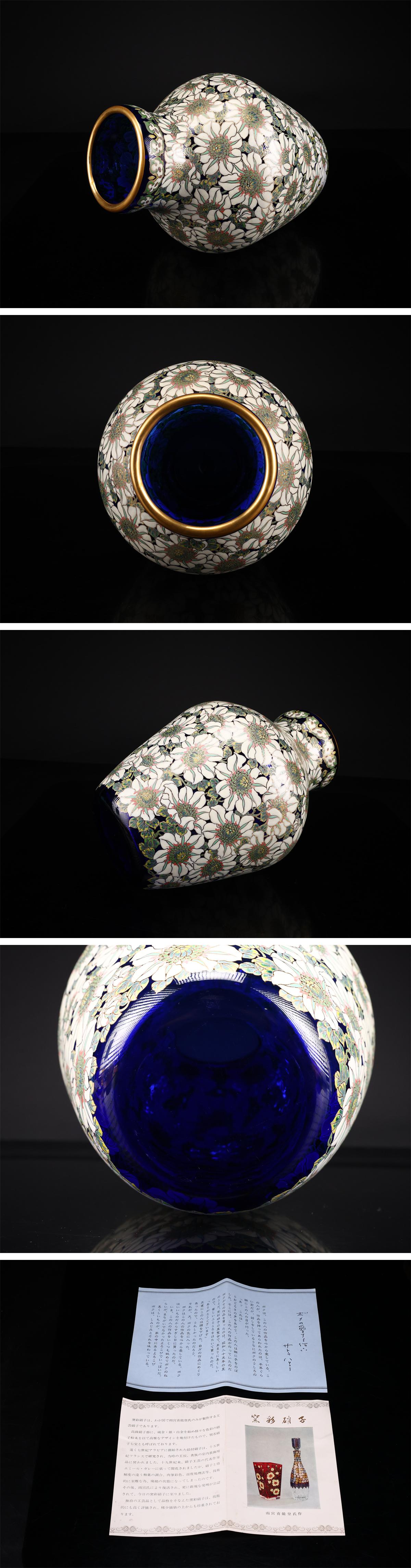 【吉】PE113 工芸ガラス 【雨宮喜能登】 窯彩硝子 最上手作 花紋 花瓶 大作 高29㎝/共箱付 美品I! 收藏