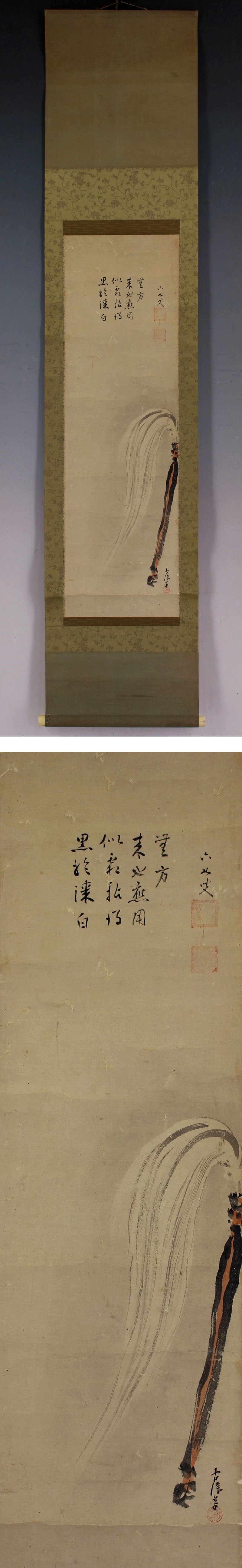 №1902132【真作】狩野古信・六如賛【払子画賛】◆紙本◆合箱◆掛軸 | |