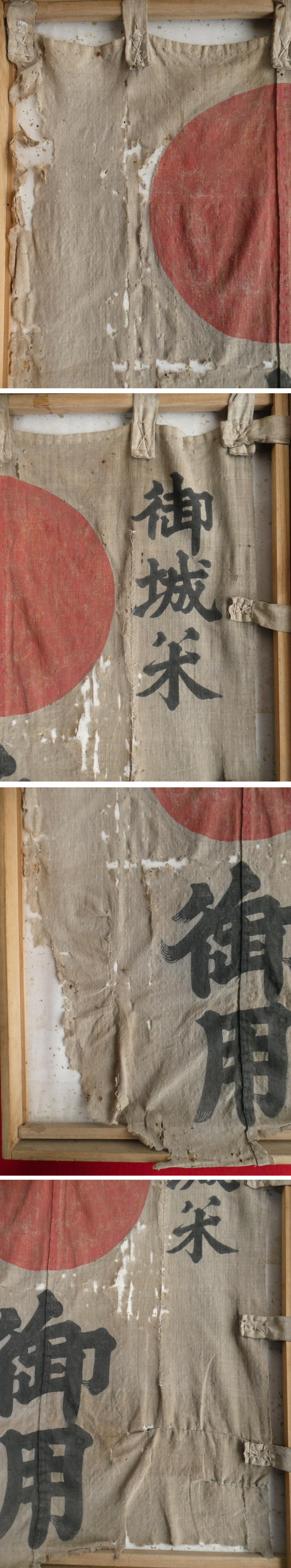 朱之丸の旗サイズ : 約 810mm × 630mm 額装サイズ : 約800mm × 663mm × 57mm (前面アクリル板をピン止め、説明書き貼り付け) |