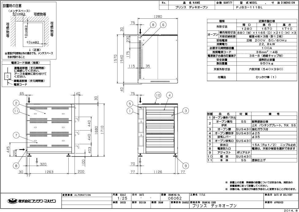 オーブン庫内有効寸法:880(W)×1165(D)×210(H)×3