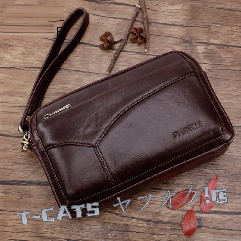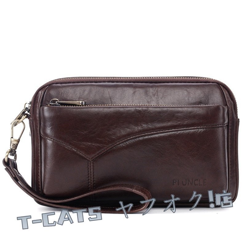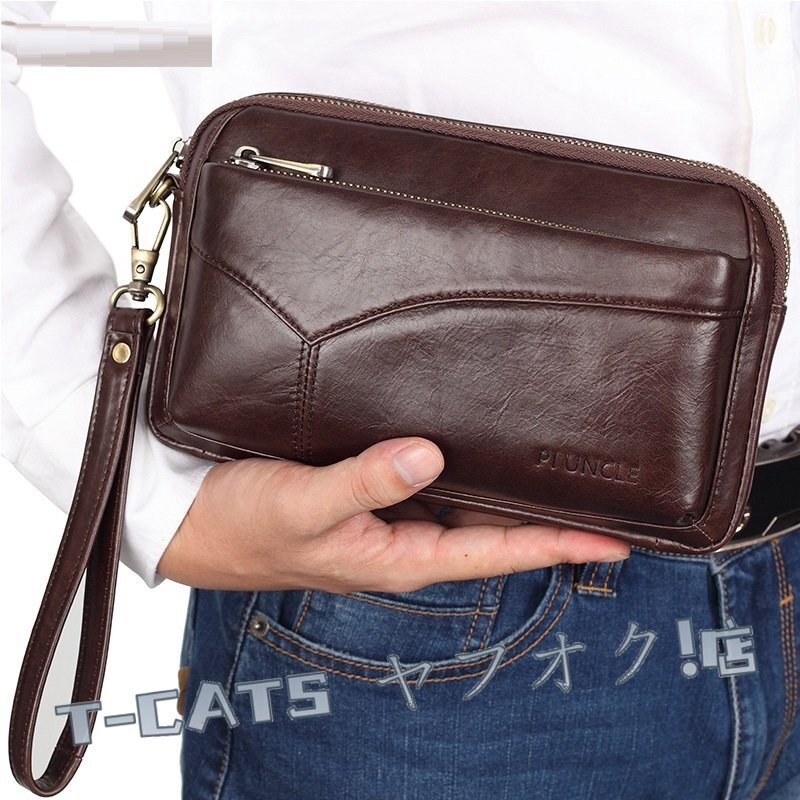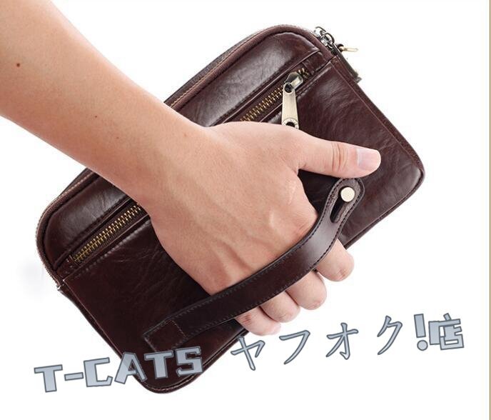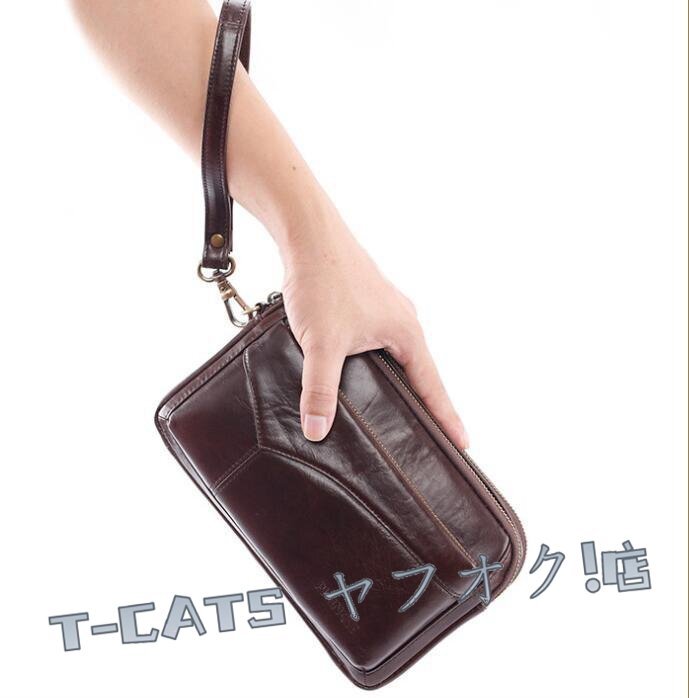 新品☆ 多機能 ハンドメイド クラッチバッグ メンズバッグ 本革 牛革 大容量 軽量コーヒー 收藏