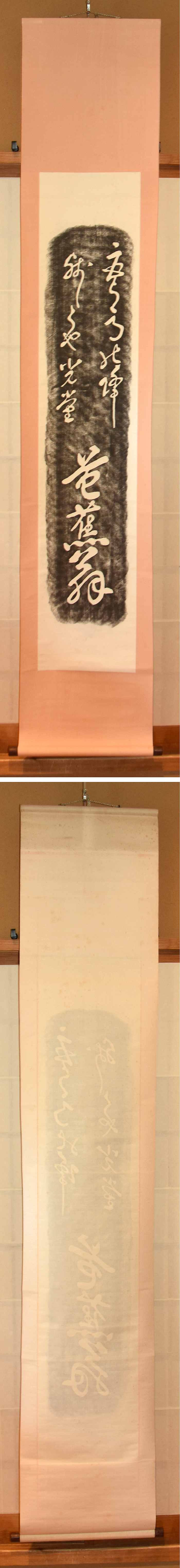 軸 横幅:39㎝ 長さ:186㎝ 本紙 横幅:25㎝ 長さ:126㎝ |