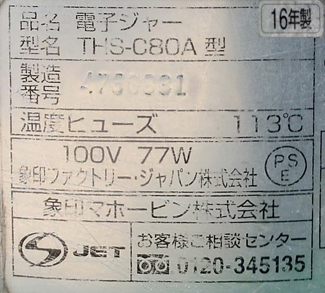 | 保温ジャー 100v 50/60hz 4.4升 Zojirushi THS-C80A | |