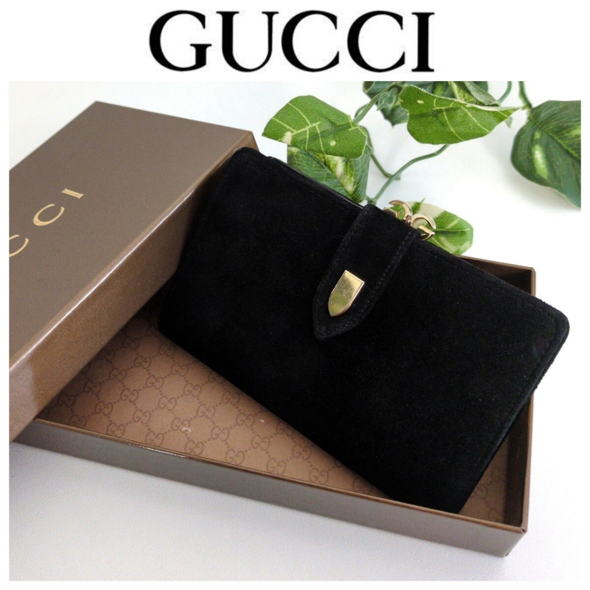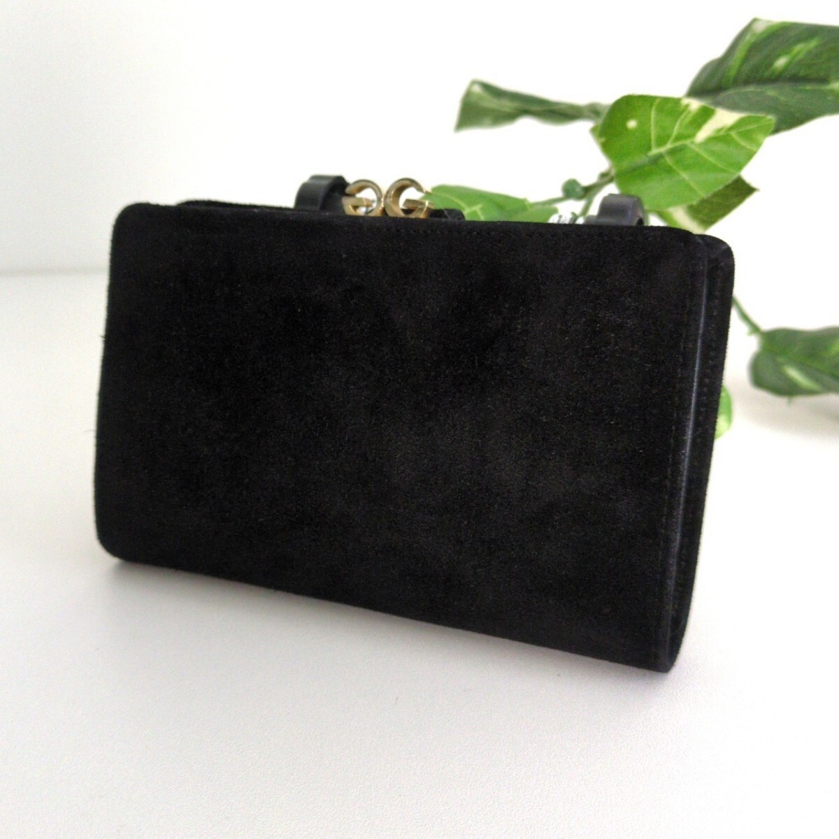 美品 オールドグッチ GG がま口 スエード レザー 二つ折り 財布 ヴィンテージ GUCCI ブラック 黒 アンティークゴールド レディース メンズ 收藏