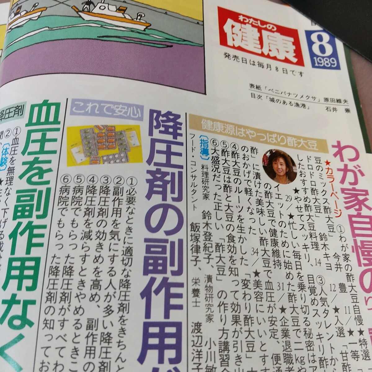 L14-319 わたしの健康 1989.8 わが家自慢の手作り酢大豆で病気知らず 主婦の友社 收藏